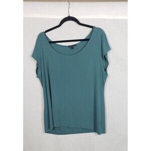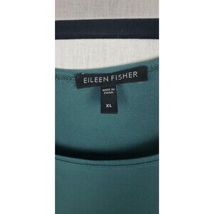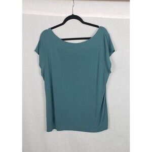 Eileen Fisher Blouse XL Teal Green 100% Silk Short Sleeve Casual Work Career