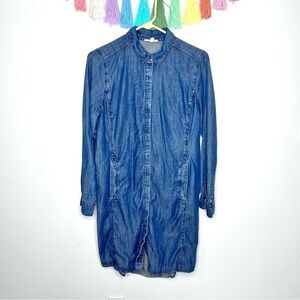 Eileen Fisher Blue Chambray Denim Long Sleeve Button Down Midi Dress Size Small