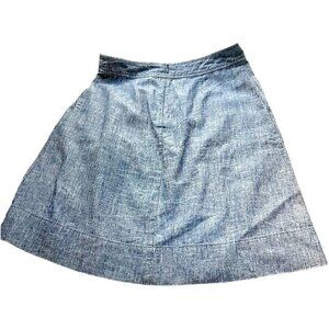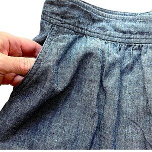 Eileen Fisher Blue Chambray Skirt w/Pockets Banded Pleated Waist Round Hem Sz P