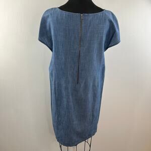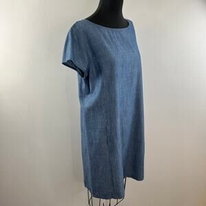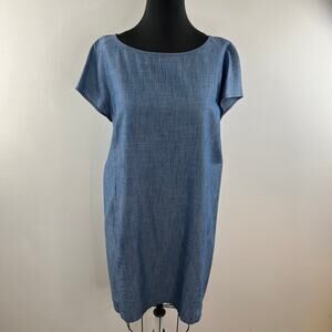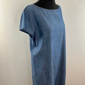 Eileen Fisher Blue Cotton Tencel Chambray Mini Shirt Dress Back Zip Casual M