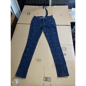 Eileen Fisher Blue Ikat Denim Jeans Size 4, Dark Wash Skinny Boho Damask Pattern
