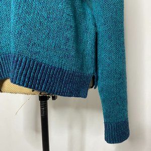 Eileen Fisher Blue Knit Linen Blend Pullover Sweater