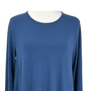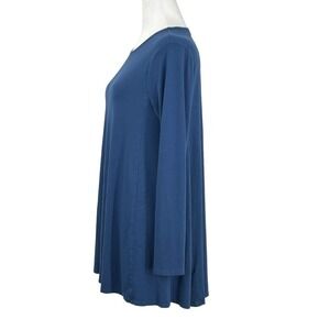 Eileen Fisher Blue Long Tunic Top Shirt Size Medium Long Sleeve Viscose Blend