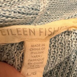 Eileen Fisher Blue Open Front Cardigan Sweater 100% Organic Linen Blend Size L