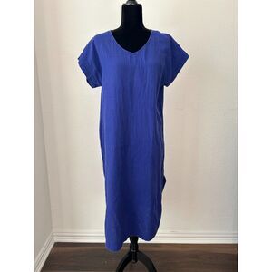 Effortless and chic, this Eileen Fisher shift dress in a gorgeous rich blue tone is perfect for both casual and elevated looks. Designed with a relaxed silhouette and short sleeves, it offers all-day comfort with a timeless minimalist style.