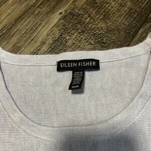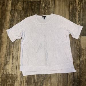 Eileen Fisher Blue Tencel Silk Drapey Blouse Top Short Sleeve Medium Round Neck