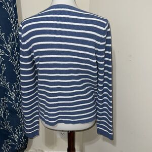 Good, preloved condition. Eileen Fisher Blue White Stripes Knit Sweater Long Sleeves Organic. Casual. Coastal grandma.
