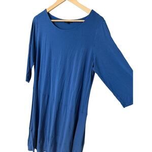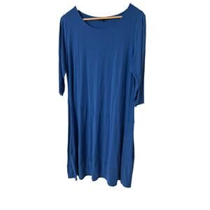 Eileen Fisher Blue XL 3/4 Sleeve Jersey Stretch Dress Rayon Lycra Flowy