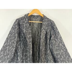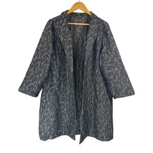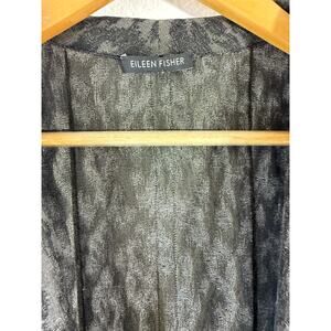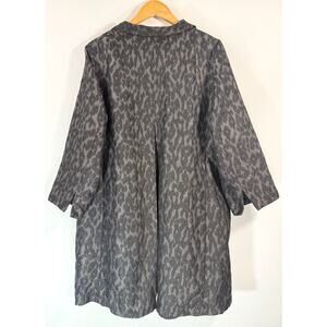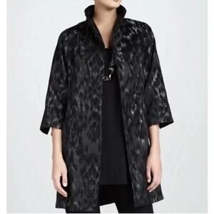 Eileen Fisher Blurred Ikat Jacquard Coat L/XL Cotton Silk Open Front Jacket