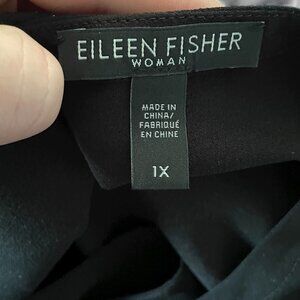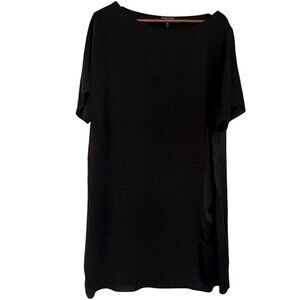 Eileen Fisher Boat Neck Shift Dress 1X Black Georgette Silk Crepe Minimalist