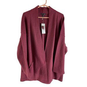 Eileen Fisher Boiled Merino Wool Cardigan Sweater Motry Kimono Womens XL Red