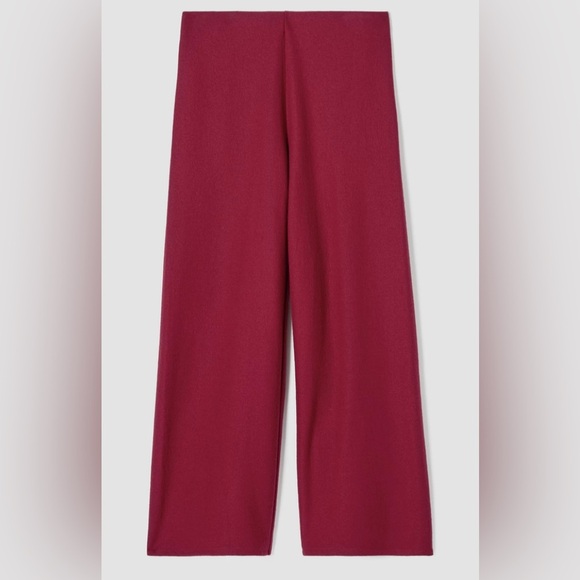 A drapey wide-leg pant with an ankle-baring length and comfortable elastic waist. Soft and structured, in our boiled wool knit.