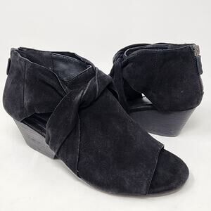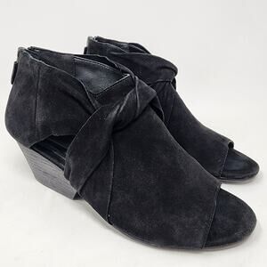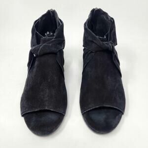 Eileen Fisher Bootie Women 7.5 Anise Black Suede Peep Toe Stacked Heel Back Zip
