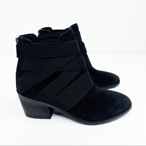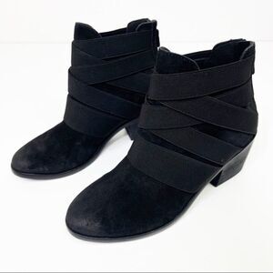 Eileen Fisher Black Suede Willis Elastic Cross Wrapped Straps Ankle Bootie Boot in a size 6.5