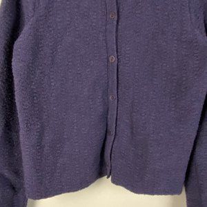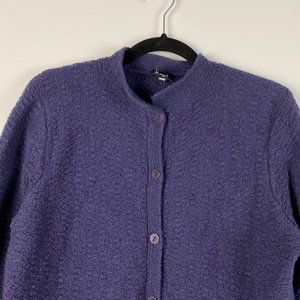 Eileen Fisher Boucle Purple Wool Blend Mock Neck Cardigan Knit Jacket Sz Medium