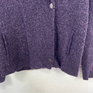 Eileen Fisher Boucle Purple Wool Collared Jacket Sweater Size Medium