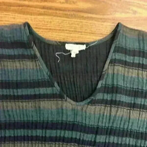 Eileen Fisher Boxy Loose V-Neck Cap Sleeve Top | Color: Black/Green | Size PM/PL