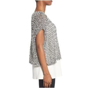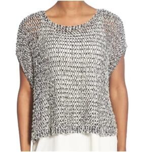 Eileen Fisher Boxy Open Knit Sheer Cropped Sweater black & white size XS