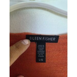 Eileen Fisher Boxy Orange Red 100% Italian Merino Wool Scoop Neck Sweater Large