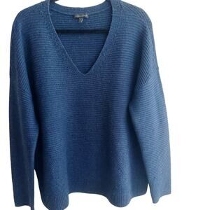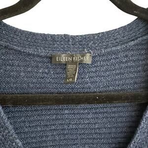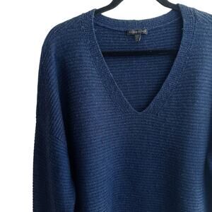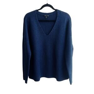 Eileen Fisher Boxy Wool Alpaca Yak V-Neck Sweater Navy Blue Large