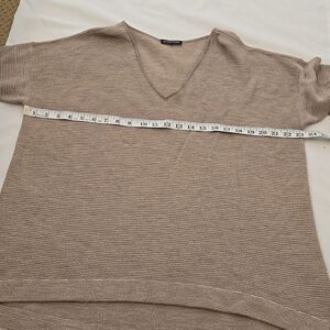 Subtle stripes boxy knitted top in Good pre-owned condition. there's a snag in the front that has been mended and size missing. please refer to photos for more details and measurements. smoke-free and pet free home. Questions? Leave a comment below!