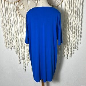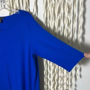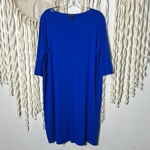 Eileen Fisher Bright Blue Quarter Sleeve Viscose Blend Jersey Knit Dress Large