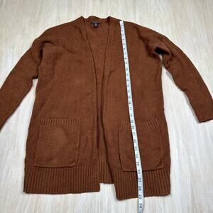 Eileen Fisher Brown Boucle Open Front Knit Cotton Blend Cardigan Sweater XXS