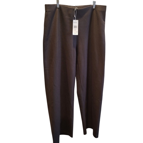 Benefits Charity! Eileen Fisher Brown Felted Wool Wide Leg Trouser Pants Side Zipper Size XLarge NEW with tags! Waist measurement is 19" inseam is 32" and legs are 14" wide.