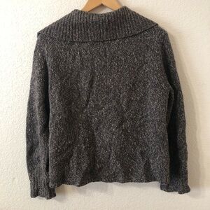 Eileen Fisher Brown Funnel Collar Button Up Merino Wool Sweater
