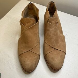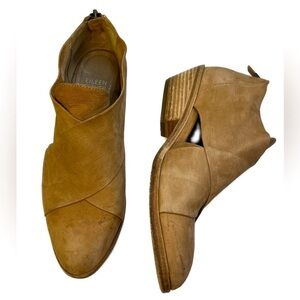 Eileen Fisher Brown Tan Cluster Crisscross Leather Boots Booties Sz 6 Cut Out