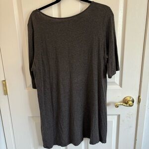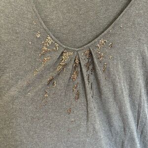 Eileen Fisher Brown top or tunic with beading detail. Size Large. Italian Yarn. Preowned condition with light wear. No holes or stains noted.
