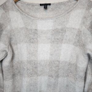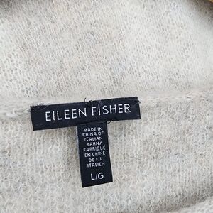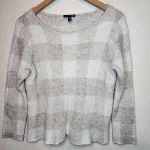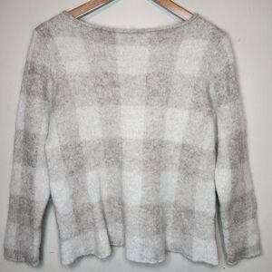 Eileen Fisher Brushed Alpaca Mohair Sweater Bateau Neck Top Gray Cream Womens Large $278
