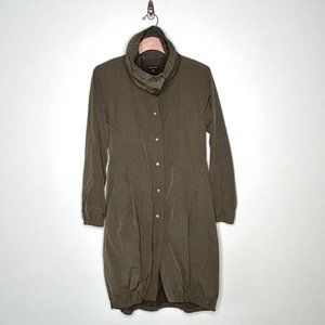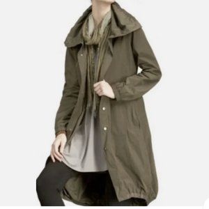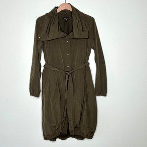 Eileen Fisher Bubble Hem Funnel Neck Belted Trench Coat Jacket Olive Size XS
