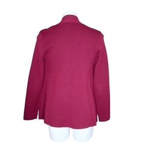 Eileen Fisher Burgundy Open Front Draped Moto Style Wool Cardigan