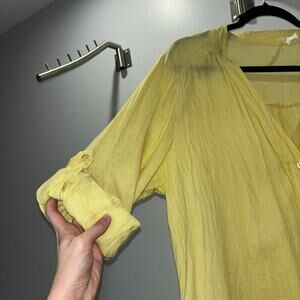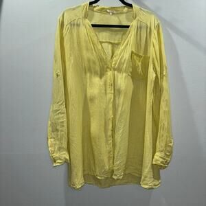 Eileen Fisher Butter Yellow 100% Irish Linen Button Down Shirt- Size Large