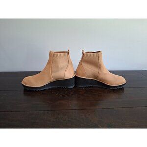 Eileen Fisher Camel Lilou Nubuck and Recycled Stretch Knit Bootie/NWOB, Sz. 5