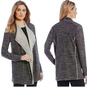 Eileen Fisher Cardigan Jacket Cascading Charcoal Organic Cotton Size L MSRP $ 24