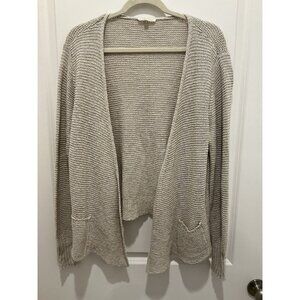 Eileen Fisher Cardigan Large Open Front Beige Pockets