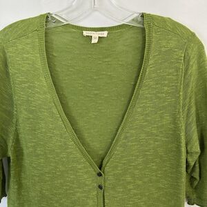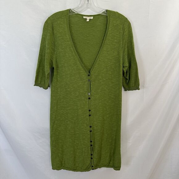 Eileen Fisher Cardigan Sweater SMALL Knit Button Down Short Sleeve Linen Green