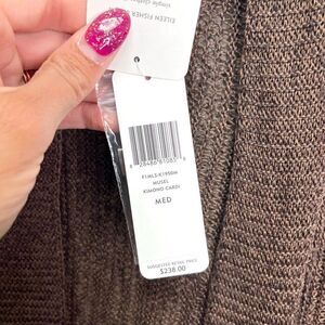 New with Tags Women’s Eileen Fisher Brown Variegated Linen Silk Knit Open Front Lightweight Kimono Cardigan Sweater in Size Medium