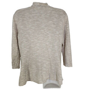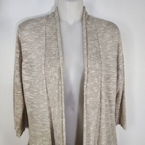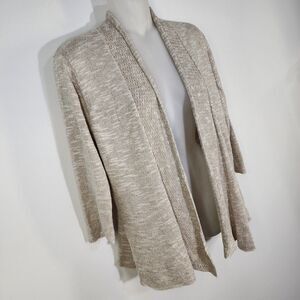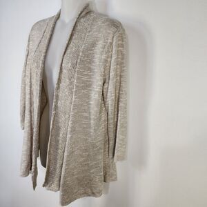 Eileen Fisher Cardigan Sweater Womens Small Beige Open Front Linen Blend 3/4 Slv