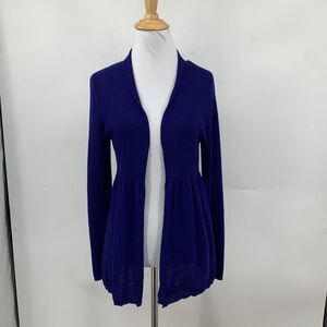 EILEEN FISHER CARDIGAN WOMENS S SMALL ROYAL BLUE WOOL KNIT OPEN FRONT RIBBED