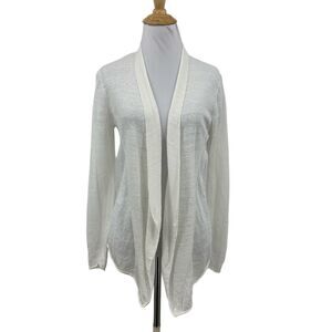 EILEEN FISHER CARDIGAN WOMENS S SMALL WHITE OPEN FRONT STITCH LINEN BLEND SHAWL