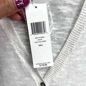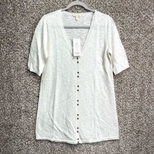 New with Tags Women’s Eileen Fisher White Linen and Cotton V-Neck Short Sleeve Lightweight Knit Long Cardigan Sweater in Size Small