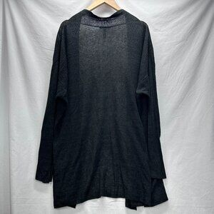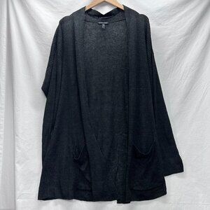 Eileen Fisher Cardigan Womens XL Black 100% Linen Lightweight Open Front Pockets