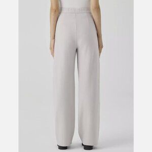 Eileen Fisher Chalk Boiled Wool Jersey Pleated Wide-Leg Pant