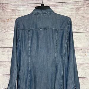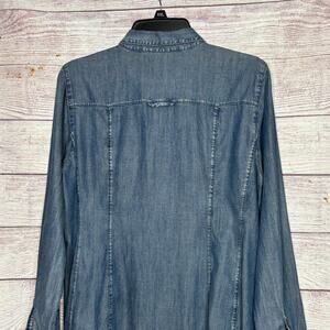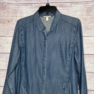 Eileen Fisher Chambray Blue Button Down Long Sleeve Knee Length Dress Medium