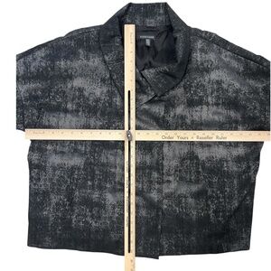 Eileen Fisher Charcoal Grandeur Jacquard High Collar Line Blazer Jacket Snaps M