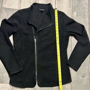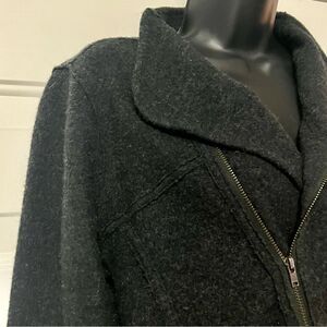 Eileen Fisher Charcoal Gray Boiled Merino Wool Asymmetrical Zipper Moto Sweater Cardigan