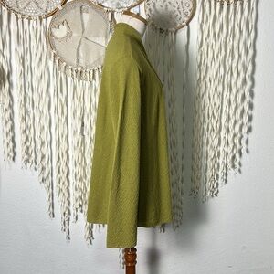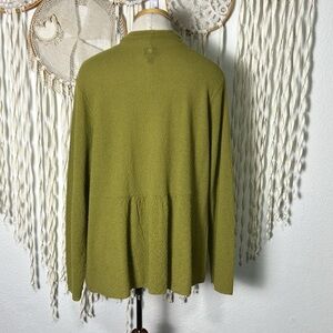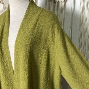 Eileen Fisher Chartreuse 100% Wool Open Front Cardigan XL Back Peplum Accent